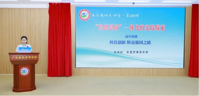 2025年9月19日下午,“南方教研大讲堂”第159场“‘科创思政’一体化的实践探索”教学研讨活动举行。本次活动结合广东省基础教育教研体系建设项目(东莞·东城)推进工作,通过成果交流、教学展示、教研沙龙和专家视点等环节,在科学工作者与教育工作者协同、学校与科技企业联通、课程与时代变革连接的大格局下,通过创造性建构基于“大思政”理念的“科创思政”课程体系、教学体系、实践体系,致力于在科学教育中强化思政引领力,既让科创教育赋能,培植学生科学素养的根基;又让科创教育赋魂,厚植其家国情怀、人文关怀,从而完整、深入、富有实效的做好科学教育的“加法”,为大思政课实践、跨学科育人,探索出卓有成效和富有特色的路子。活动在教研网、触电新闻、广东教育Plus、广东教育研究、广东教育传媒、广州教育联播、和教育、粤教翔云等多个平台同步播出。截至活动结束,点播量累计达31.75万次。